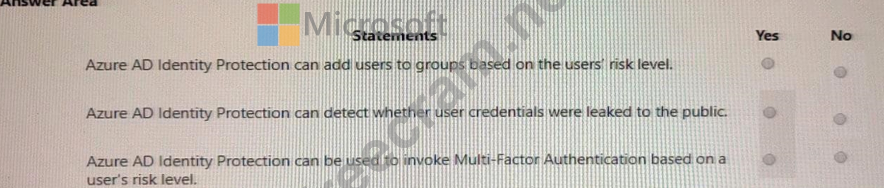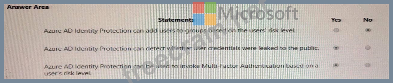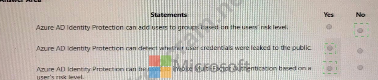 For each of the following statements, select Yes if the statement is true. Otherwise, select No.