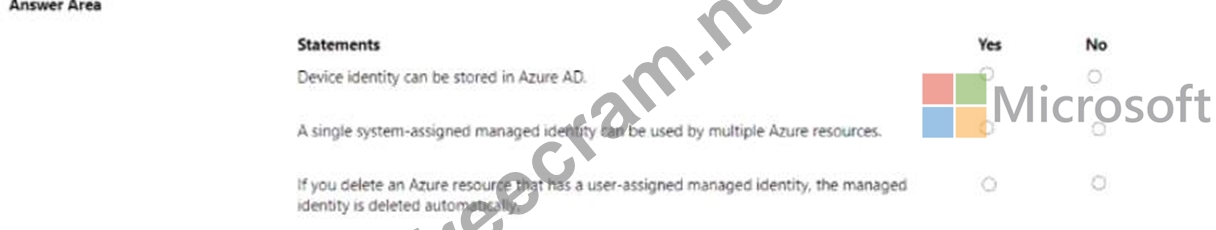 For each of the following statements, select Yes if the statement is true Otherwise, select No.