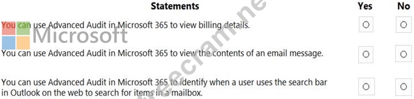 For each of the following statements, select Yes if the statement is true. Otherwise, select No.