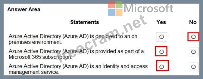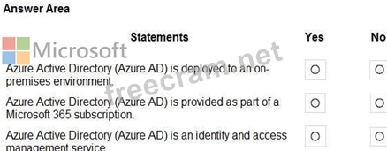 For each of the following statements, select Yes if the statement is true. Otherwise, select No.