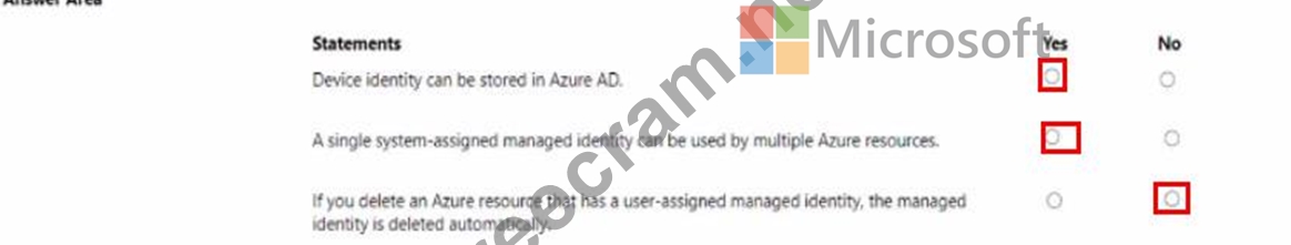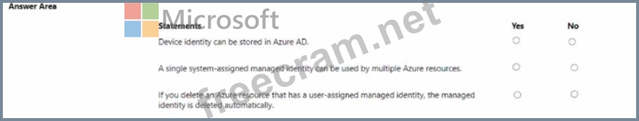 For each of the following statements, select Yes if the statement is true Otherwise, select No.
