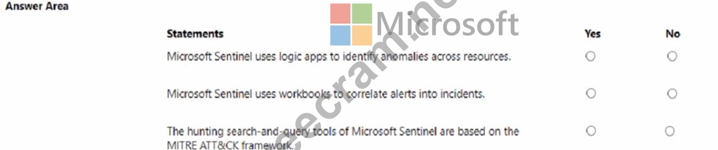 For each of the following statements, select Yes if the statement is true. Otherwise, select No. NOTE: Each correct selection is worth one point.