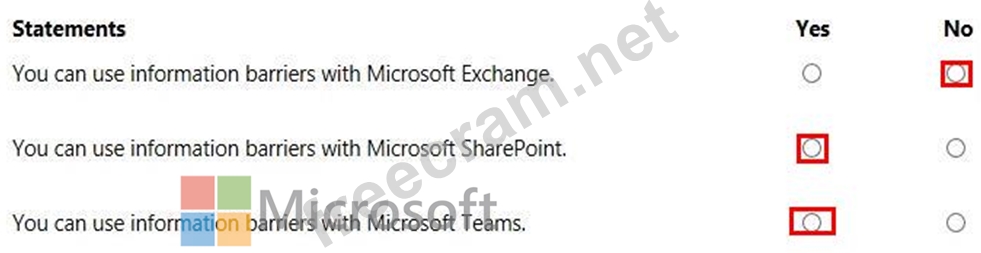 For each of the following statements, select Yes if the statement is true. Otherwise, select No. NOTE: Each correct selection is worth one point.
