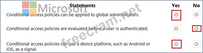 For each of the following statements, select Yes if the statement is true. Otherwise, select No.