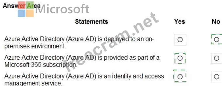 For each of the following statements, select Yes if the statement is true. Otherwise, select No.