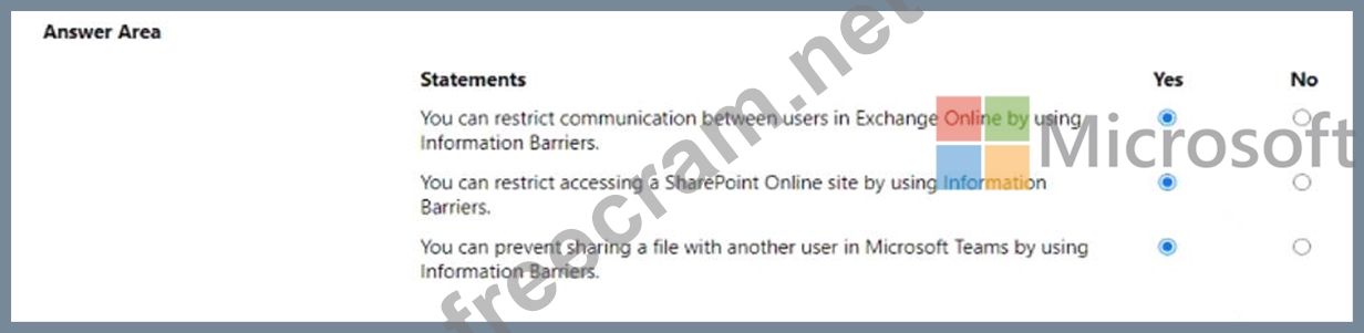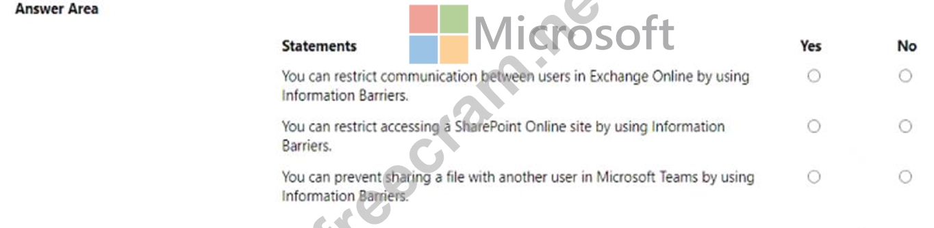 For each of the following statements, select Yes if the statement is true. Otherwise, select No.