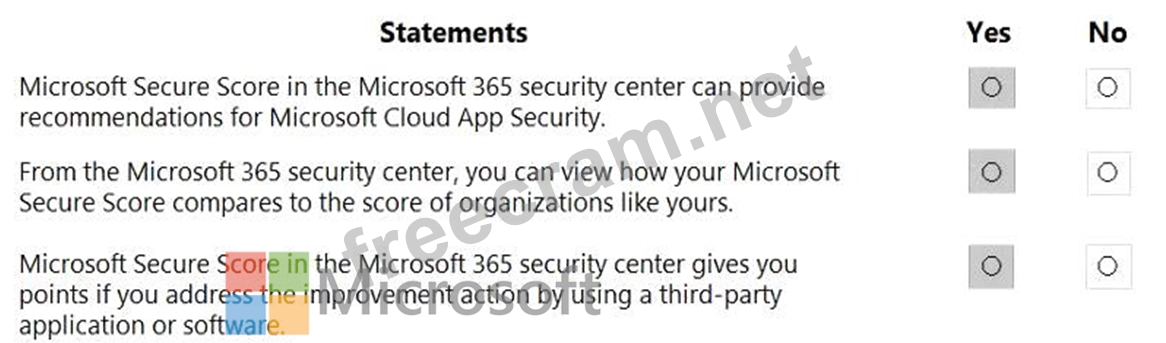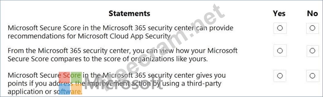 For each of the following statements, select Yes if the statement is true. Otherwise, select No.