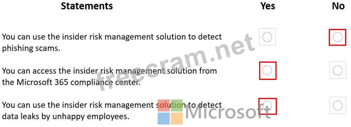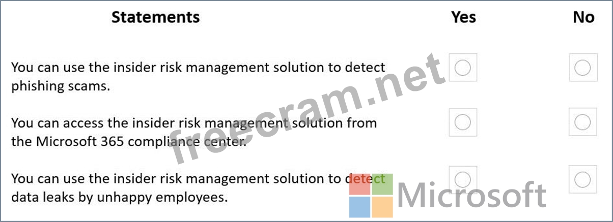 For each of the following statements, select Yes if the statement is true. Otherwise, select No.