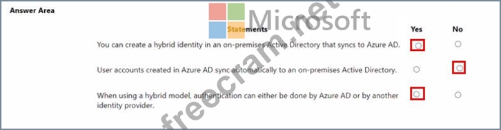 Question 44: In a hybrid identity model, what can you use to sync identit...