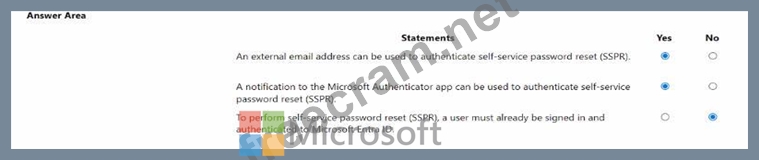 Question 34: Which three authentication methods can Microsoft Entra users...