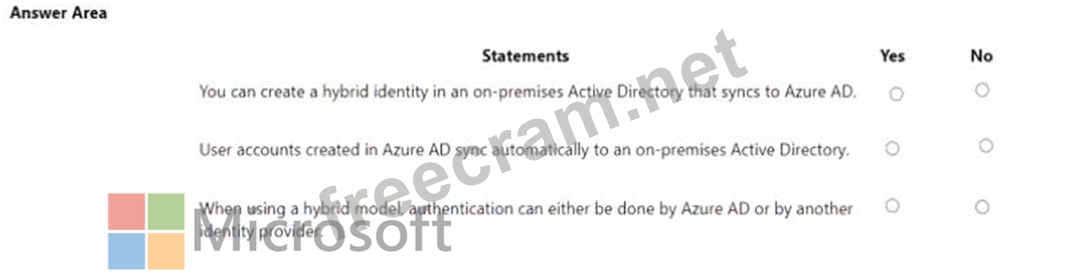 Question 35: In a hybrid identity model, what can you use to sync identit...