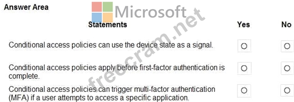 For each of the following statements, select Yes if the statement is true. Otherwise, select No.