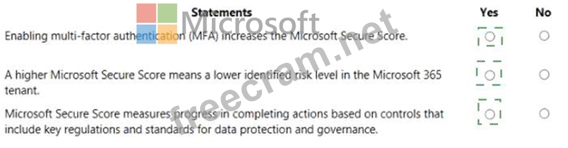 For each of the following statements, select Yes if the statement is true. Otherwise, select No.