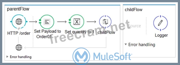 Refer to the exhibit. The parentFlow contains a Flow Reference for childFlow.