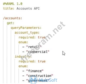 Refer to the exhibit. This RAML specification includes a resource and method to retrieve accounts by account_type and industry. What is the correct URI to get all retail finance accounts?