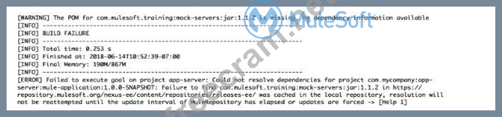 Refer to the exhibit. The error occurs when a project is run in Anypoint Studio. The project, which has a dependency that is not in the MuleSoft Maven repository, was created and successfully run on a different computer. What is the next step to fix the error to get the project to run successfully?