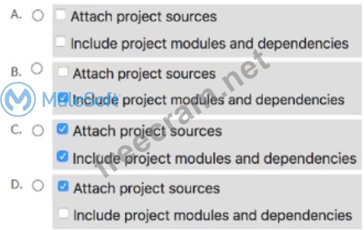 A Mule application contains an ActiveMQ JMS dependency. The Mule application was developed in Anypoint Studio and runs successfully in Anypoint Studio. The Mule application must now be exported from Anypoint Studio and shared with another developer. What export options create the smallest JAR file that can be imported into the other developer's Anypoint Studio and run successfully?