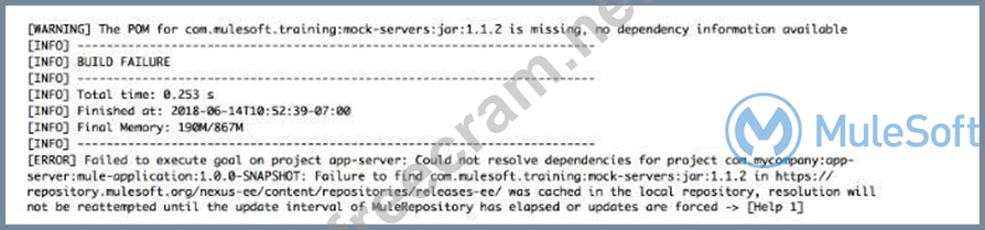 Refer to the exhibit. The error occurs when a project is run in Anypoint Studio. The project, which has a dependency that is not in the MuleSoft Maven repository, was created and successfully run on a different computer. What is the next step to fix the error to get the project to run successfully?