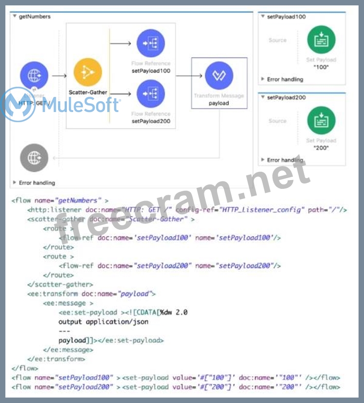 Refer to the exhibits. The input array of strings is processed by the batch job that processes, fitters, and aggregates the values. What is the last message logged by the Logger component after the batch job completes processing? A) B) C) D)