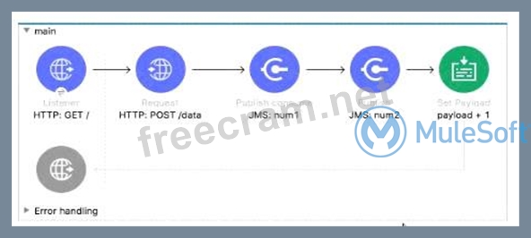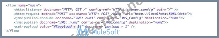 Question 10: A flow has a JMS Publish consume operation followed by a JMS...