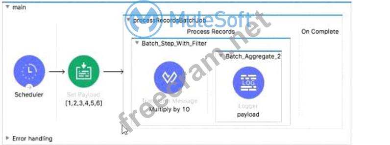 Refer to the exhibit. The Batch Job processes, filters and aggregates records, What is the expected output from the Logger component?