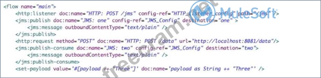 Question 10: A flow has a JMS Publish consume operation followed by a JMS...