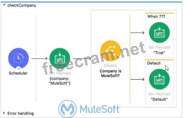 Correct answer is A #['MuleSoft' == paytoad.company]