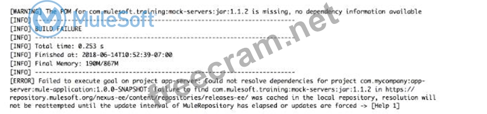 Refer to the exhibit. The error occurs when a project is run in Anypoint Studio. The project, which has a dependency that is not in the MuleSoft Maven repository, was created and successfully run on a different computer. What is the next step to fix the error to get the project to run successfully?