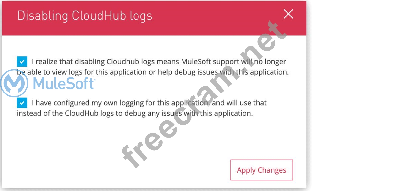 - CloudHub system log messages cannot be sent to external log management system without installing custom CH logging configuration through support