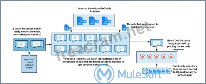 * A batch job is the scope element in an application in which Mule processes a message payload as a batch of records. The term batch job is inclusive of all three phases of processing: Load and Dispatch, Process, and On Complete.