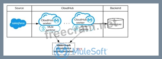 A Mule application is being designed to be deployed to several CIoudHub workers. The Mule application's integration logic is to replicate changed Accounts from Satesforce to a backend system every 5 minutes.
