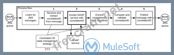 Where should the Mule application store the JMS Correlation ID values received in Step 1 and Step 3 so that the validation in Step 4 can be performed, while also making the overall Mule application highly available, fault- tolerant, performant, and maintainable?