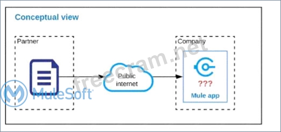 Refer to the exhibit. An organization is designing a Mule application to receive data from one external business partner. The two companies currently have no shared IT infrastructure and do not want to establish one. Instead, all communication should be over the public internet (with no VPN).