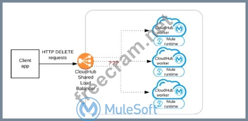 A Mule application has an HTTP Listener that accepts HTTP DELETE requests. This Mule application Is deployed to three CloudHub workers under the control of the CloudHub Shared Load Balancer.