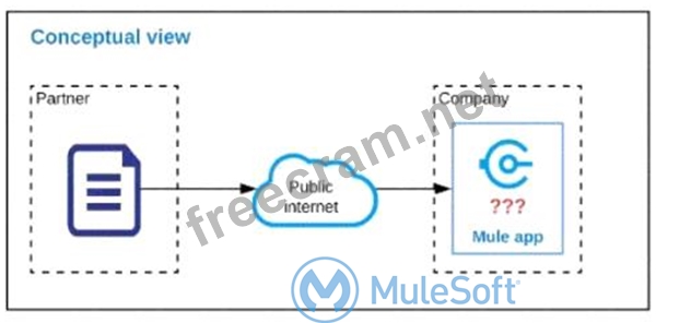 An organization is designing a Mule application to receive data from one external business partner. The two companies currently have no shared IT infrastructure and do not want to establish one. Instead, all communication should be over the public internet (with no VPN).