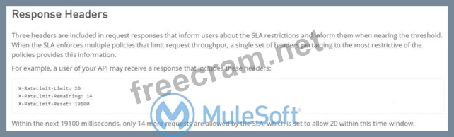 Question 10: Skipped An API implementation returns three X-RateLimit-* HTTP response headers to a requesting API client. What type of information do these response headers indicate to the API client?