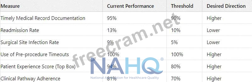 The provider's Ongoing Professional Practice Evaluation (OPPE) profile suggests that the provider partially meets expectations, meaning 40% to 64% of measures are at the threshold. According to the organization's criteria, this level of performance warrants retaining privileges but likely with closer monitoring or additional support. * Partial Meeting of Expectations: When a provider partially meets expectations, it indicates that there are areas of performance that need improvement, but the provider is still performing sufficiently in enough areas to retain privileges. * Next Steps: The provider should likely undergo further evaluation or targeted support to address the areas where performance is lacking. This might involve additional training, mentoring, or a Focused Professional Practice Evaluation (FPPE) if specific concerns are identified. * Comparison to Other Options: * A. The provider fully meets expectations; do nothing is not applicable since the provider does not fully meet the performance criteria. * B. The provider does not meet expectations; refer to peer review would be appropriate if the provider's performance was below 40%, but that is not the case here. * D. The provider meets expectations; retain privileges would be correct if the provider was in the 65% to 80% range, which is not the situation here. References: NAHQ guidelines on OPPE and FPPE processes emphasize the importance of distinguishing between different levels of performance and applying the appropriate actions based on the specific thresholds met by the provider. =========