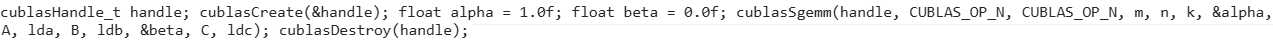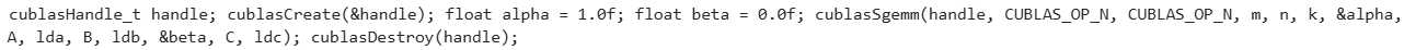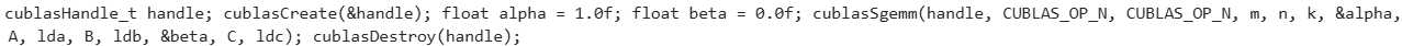 Consider the following code snippet that uses the NVIDIA cuBLAS library. Which statement best describes the purpose and potential benefits of this code?