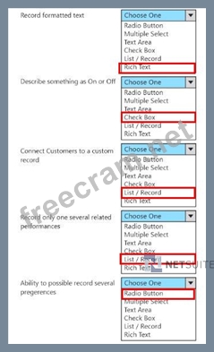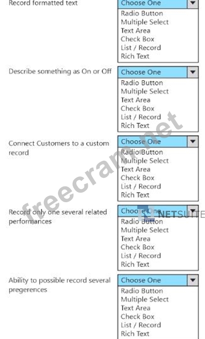 Match the desired requirement to the most appropriate custom Field Type to use.