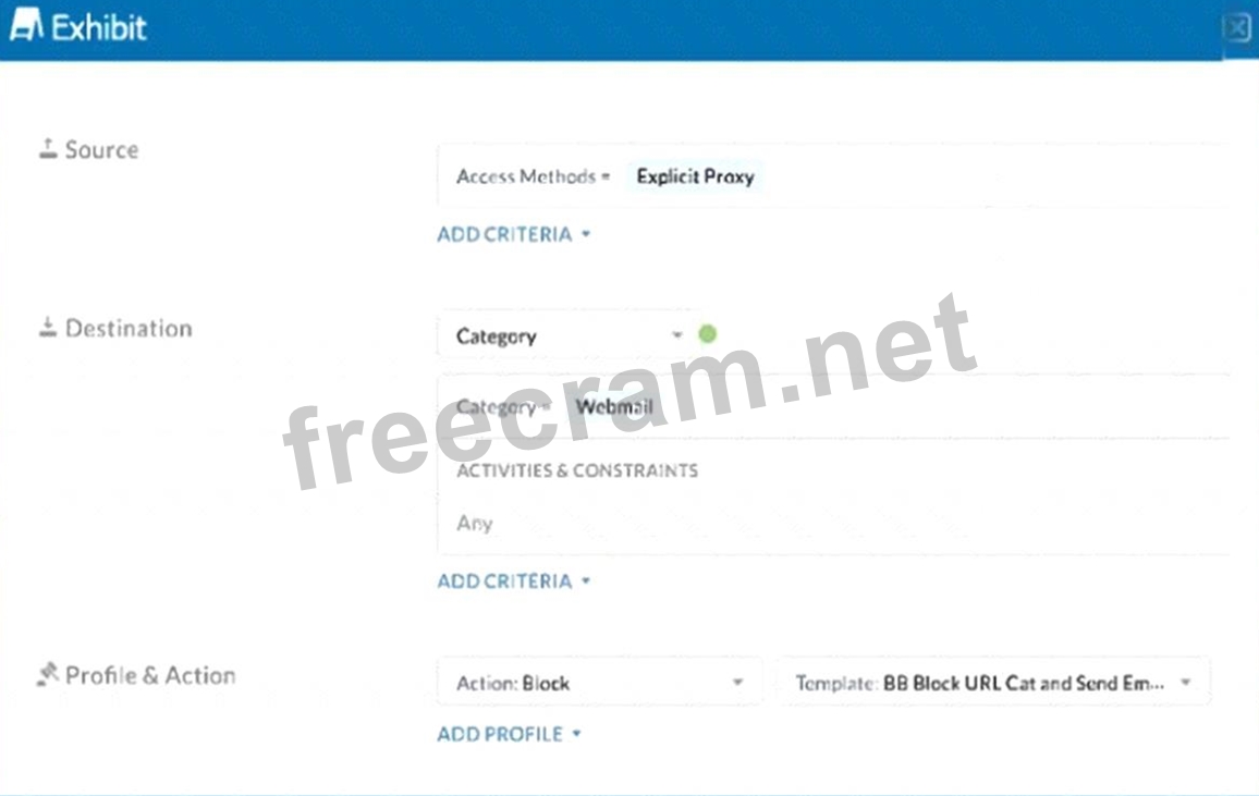 Question 38: Click the Exhibit button. (Exhibit) A user has the Netskope ...