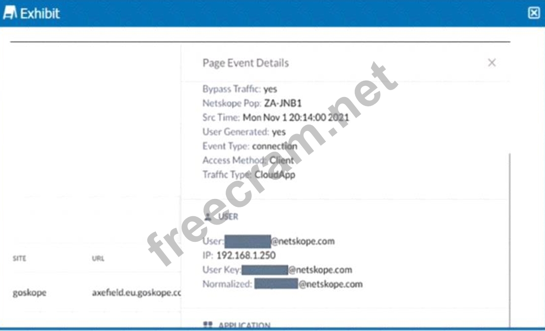 Explanation The problem in this scenario is that the traffic matched a Do Not Decrypt policy. A Do Not Decrypt policy is a rule that specifies the traffic that you want to leave encrypted and not further analyzed by Netskope via the Real-time Protection policies1. In the exhibit, we can see that the traffic from the user to YouTube has a "Bypass Traffic" value of "yes" and a "Netskope" value of "yes". This means that the traffic was steered to Netskope but not decrypted or inspected2. Therefore, the real-time policy that was created to restrict users from accessing YouTube content tagged as Sport did not apply, and users could still access the content. To solve this problem, you need to either remove or modify the Do Not Decrypt policy that matches the traffic to YouTube, or create an exception for the Sport category in the policy3. Therefore, option D is correct and the other options are incorrect. References: Page Events - Netskope Knowledge Portal, Add a Policy for SSL Decryption - Netskope Knowledge Portal, YouTube Content Control - Netskope Knowledge Portal