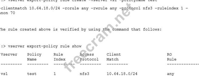 An export policy rule for a volume is set by using the command shown in the exhibit.