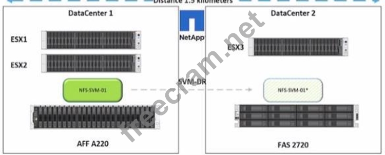Exhibit. You have an SVM-DR relationship as shown in the exhibit. You are given a new requirement to use SnapMirror Synchronous (SMS) for the data volumes In NFS-SVM-01. In this scenario, which solution Is supported to enable SMS in ONTAP 9.8 software?