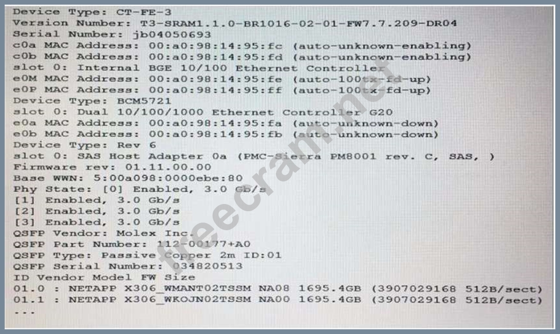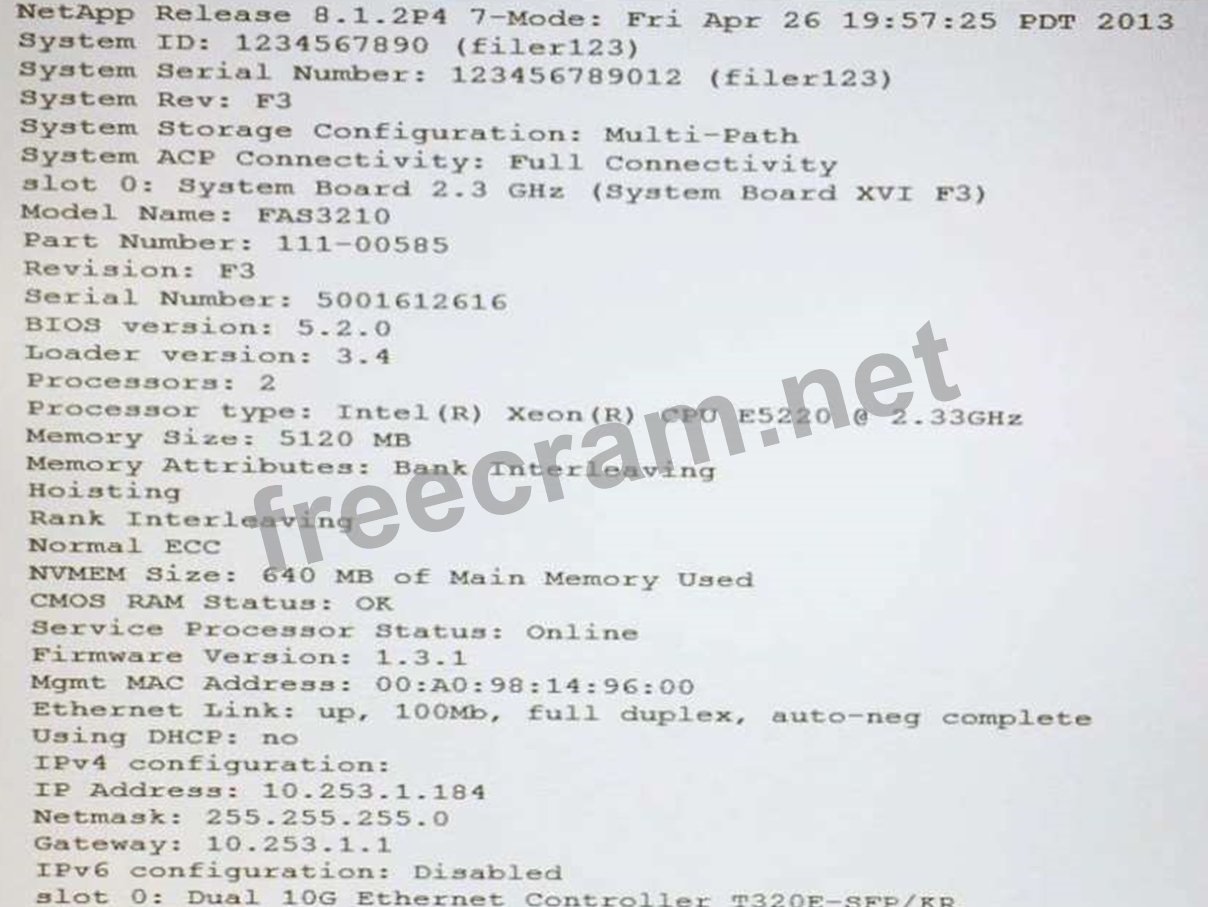 The output of the sysconfig -a command is shown in the exhibit.