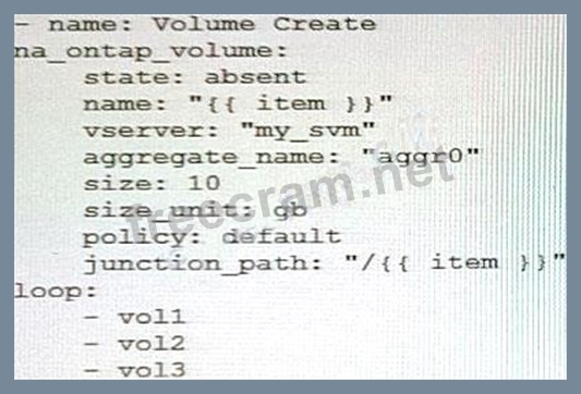 Question 56: You are creating an Ansible playbook to deploy a NetApp ONTA...