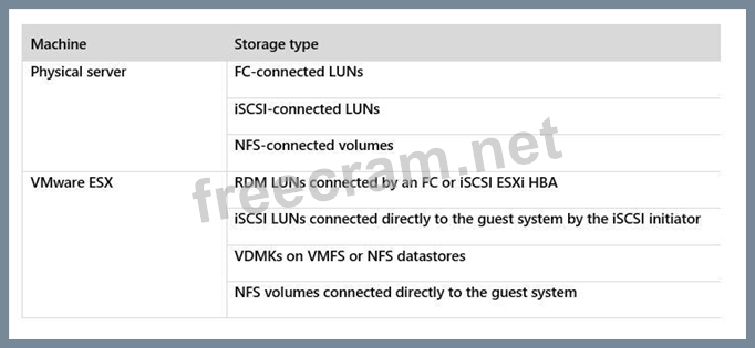 Question 15: You need to backup Exchange, MS SQL, and VMware virtual mach...