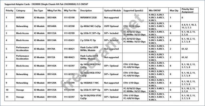 A customer needs to add an additional X91143A card into a FAS9000 to allow mirroring between theproduction system and the disaster recovery FAS9000 platform. Slots 1, 4, 6, 8, and 9 have cards in them.