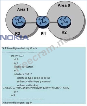 The OSPF adjacency between routers R3 and R1 is down. What is the problem?