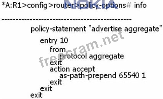 Question 183: Router R1, in AS 65540, has the export policy shown below. I...