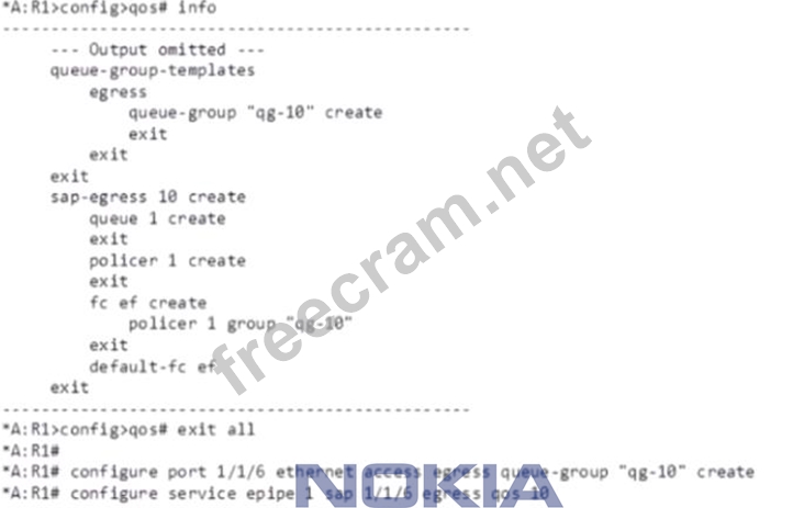 Question 126: According to the SAP-ingress QoS policy shown, which packets...